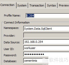 8、 配置完毕后,可在预览选项卡中查看数据库连接语句。