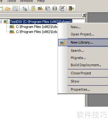 14、 在系统树左侧,右键单击项目名称,选择新建库选项。