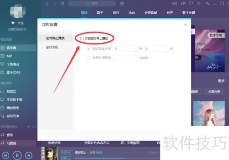 6、 进入定时设置页面后,点击定时停止播放选项,随后在新页面中启用开启定时停止播放功能即可。