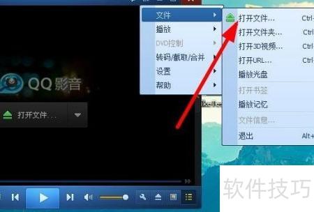 2、 启动QQ影音后,点击界面中红色箭头所指的打开菜单按钮。