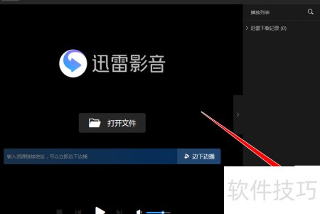 1、 在迅雷影音界面右侧,点击箭头图标即可。