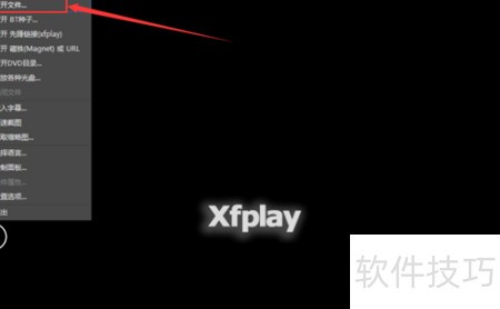 1、 首先需下载并安装影音先锋软件,安装完成后启动程序,进入主界面后点击影音先锋按钮,系统将弹出导航菜单,从中选择打开文件选项即可继续操作。
