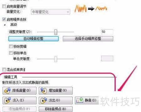 6、 红色框内的编辑工具在音频处理方面功能实用。
