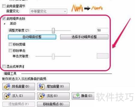 5、 开启噪声去除后,虽可有效降低背景杂音,但过度处理会削弱声音的自然灵动,需适度调节以保留音频的鲜活质感。