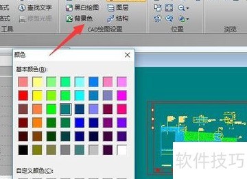 3、 打开DWG文件后,切换至查看器选项卡,从位置列表中选取相应功能即可进行浏览操作。