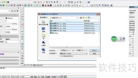 2、 打开DWG文件选择对话框,定位分幅图目录,选取需批量插入的图形文件。