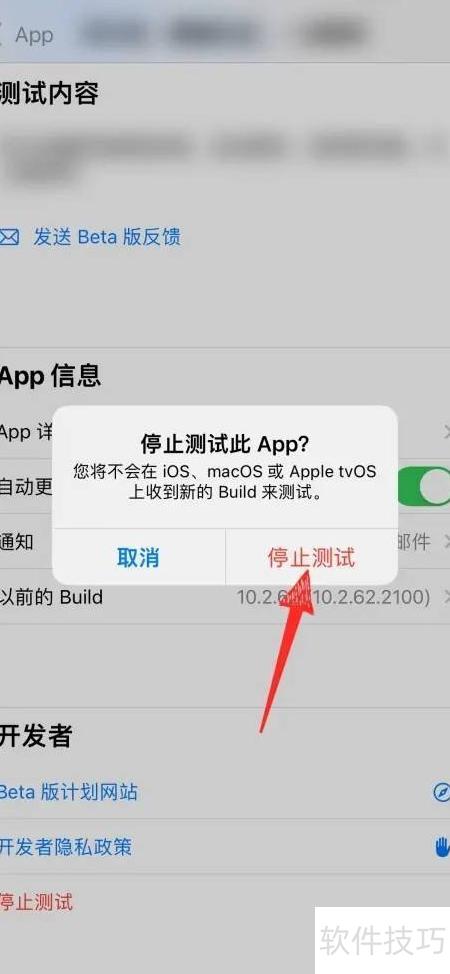 4、 进入软件信息页面,点击停止测试即可。