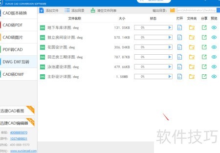 1、 在页面左侧选择格式转换功能,点击DWG转DXF选项,将需要转换的DWG文件添加进来,即可开始转换为DXF格式。