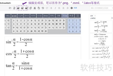 5、 可将编辑完成的公式保存为PNG、MML或LaTeX等格式,便于导入其他应用程序中使用。