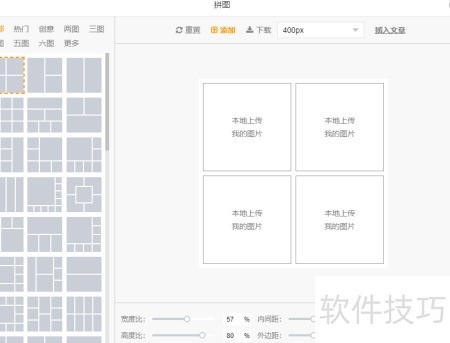、 在弹出的拼图窗口中,可自由组合多张图片。支持两种上传方式:本地上传或选择已存于图库中的图片。上传后可调整图片宽高比等参数,设置完成后点击插入文章即可完成操作,步骤简单便捷,极大提升了编辑效率,使用体验非常流畅。