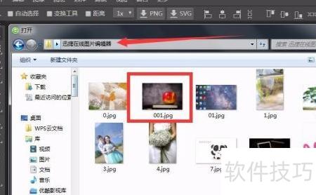 1、 进入在线图片编辑界面,左上角菜单栏点击文件—打开,在弹出的窗口中找到电脑里存放的待编辑视频,选中后点击打开即可。