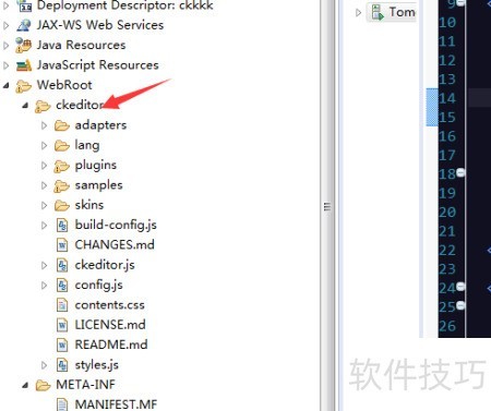 4、 解压文件后,把其中 ckeditorWebContentckeditor 文件夹内的所有内容复制到项目对应的目录中即可。