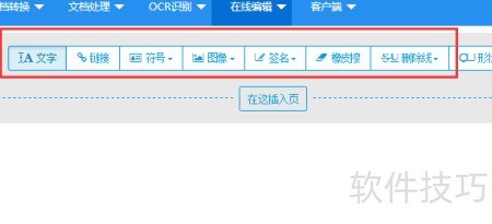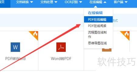 2、 打开在线转换工具,点击顶部菜单中的PDF在线编辑,即可进入文件编辑页面进行操作。