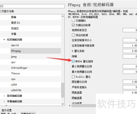 5、 勾选MPEG4量化矩...