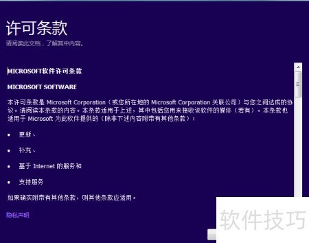 6、 同意Windows 10安装过程中微软的许可协议条款。