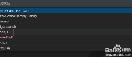4、 选择Node.js,所示。