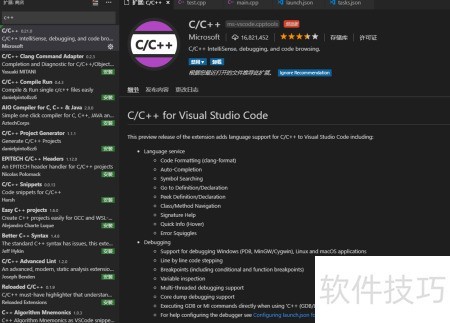 3、 启动VSCode后,点击界面左下角的扩展按钮,搜索所需插件。此处首先查找C++相关插件,这是编写C++程序必不可少的工具,安装后可提供语法支持与智能提示,提升开发效率。