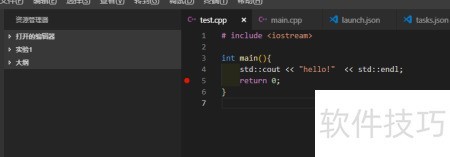 16、 在左侧目录中创建一个名为 main.cpp 的新文件。
