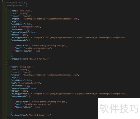 21、 修改launch.json文件内容,将miDebuggerPath后的路径替换为你的MinGW编译器实际安装路径,确保调试器能够正确启动并连接到编译环境,避免因路径错误导致调试失败。