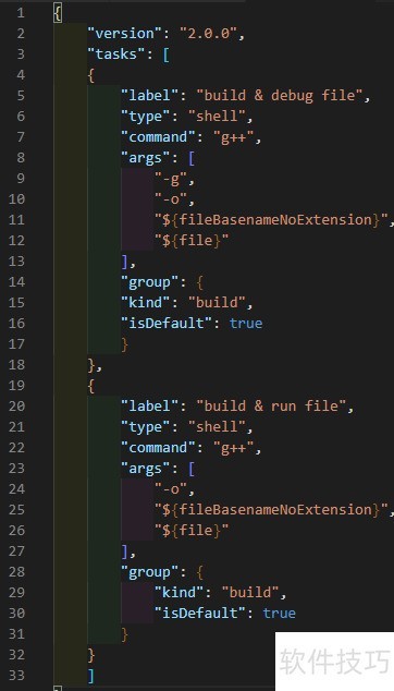 35、 tasks.json 文件内容如下(可直接复制使用):