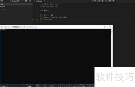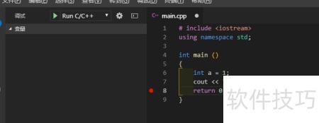 50、 终端显示正确结果,调试窗口中变量a及其值均正常出现。