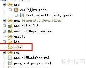 42、 在Android项目中创建libs文件夹,将提供的Android开发jar包复制到该文件夹内,具体操作所示。