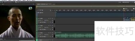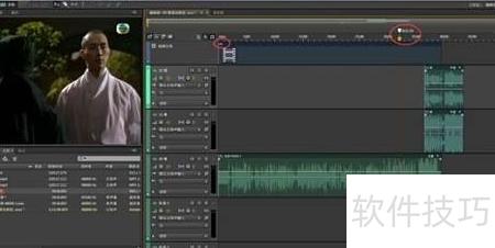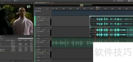 19、 按下Alt+Home键设置入点,调整轨道位置,确保双语版本中粤语音轨的波形与gotv版第49集的粤语音轨波形对齐,具体参照图示。