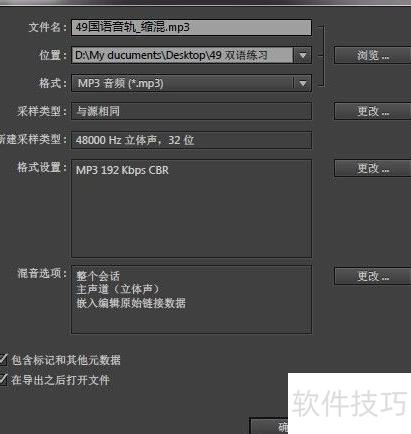 22、 在Audition中选择文件,点击导出,进入多音轨混音,选择整个会话,设置文件名与保存路径后确认即可完成混合导出。