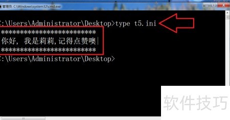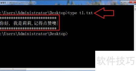 11、 查看文本文件内容:type t1.txt