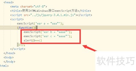 3、 添加script标签,调用execScript执行脚本,输出变量a的内容。