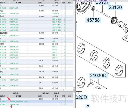 5、 点击编号23260,当其变红后,系统左下角将显示该部件的具体编号,如23200 2B560或23200 2B590。