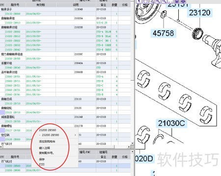 7、 右键点击部件编码,即可弹出添加购物车、复制配件号等操作选项。