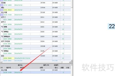 5、 点击22124C编码,当其变红后,左下角将显示该部件的完整编码:22124 37100。