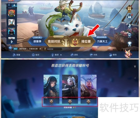 6、 若未能进入前50或前100名,可通过参与排位赛积攒指定英雄的荣耀战力,于下周一5点前达成并维持排名,之后打开排位赛界面即可领取对应称号。