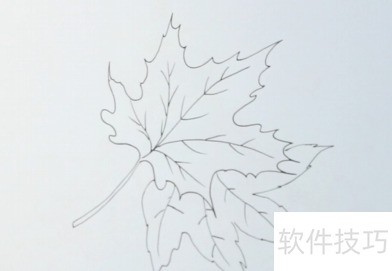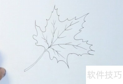 1、 先勾勒出枫叶外形,其叶片呈波浪状边缘。