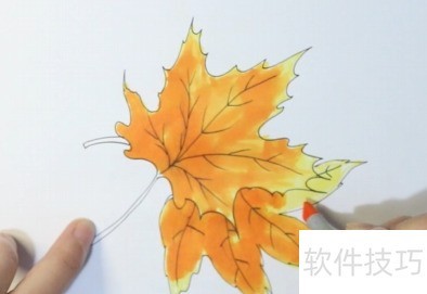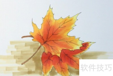 4、 开始为枫叶上色,先均匀涂抹一层黄色,再覆盖一层橙色,确保色彩饱满自然。