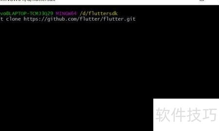 4、 在D盘创建一个文件夹,例如命名为fluttersdk。进入该目录后,右键点击空白处,选择Git Bash Here打开命令行窗口。执行命令 git clone https://github.com/flutter/flutter.git,从GitHub下载Flutter SDK。等待克隆完成,下载完毕后,需将D:fluttersdkflutterin路径添加到系统的环境变量Path中,以便在任意位置通过命令行调用Flutter相关命令,完成基础配置。