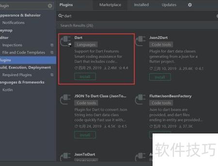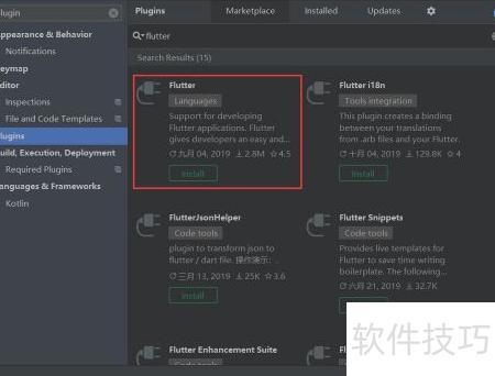 8、 启动Android Studio后,进入设置界面,选择插件选项,在搜索框中查找并安装Dart与Flutter两个插件。安装完毕后重启开发环境,即可创建全新的Flutter项目,开始进行跨平台应用开发,整个过程简单便捷,为后续开发做好准备。