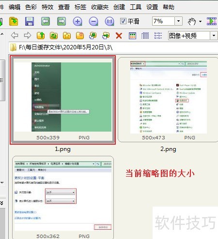 1、 启动FastStone图片浏览器后,可注意到缩略图尺寸较小。