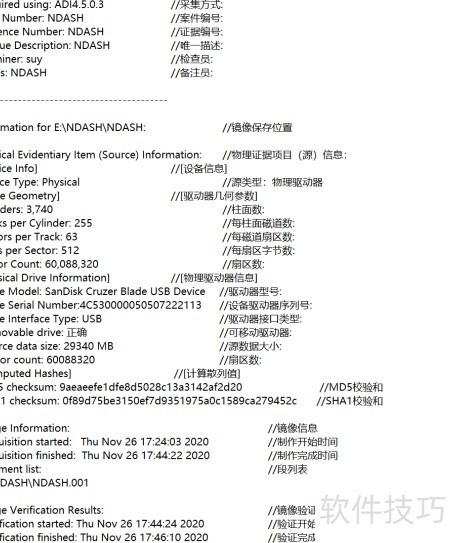 1、 使用FTK Imager制作镜像后,系统将自动生成包含详细信息的记录报告。