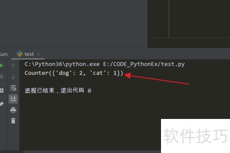 8、 在运行结果窗口中可观察到,Counter类已成功对元组对象完成计数操作。