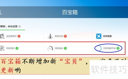 2、 新版百度卫士百宝箱新增三项功能,最右侧所示为百度电脑专家。