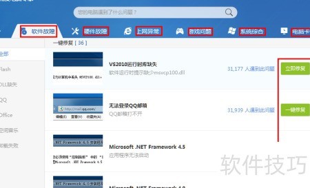 4、 提供六大类别常见电脑问题,涵盖多种故障情况。每个问题均配有专用解决工具,只需定位故障并点击对应按钮,即可快速解决问题,操作简便高效,轻松应对各类电脑故障。