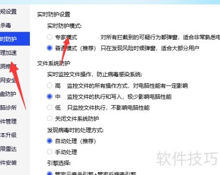 3、 开启实时防护并进入专家模式即可。