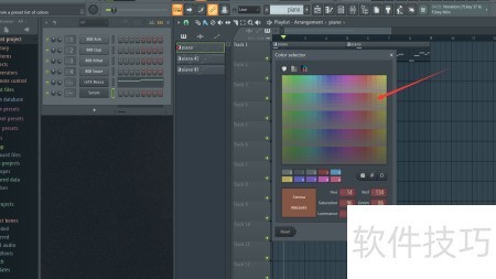 FL Studio支持通过轨道颜色自定义音乐条色彩,便于清晰区分不同音轨内容。