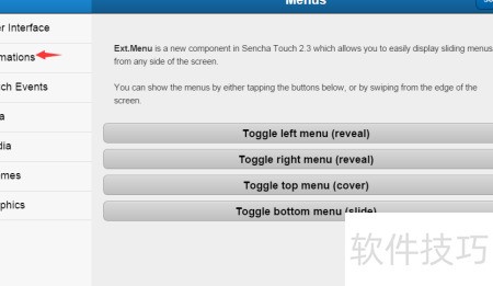 1、 启动Sencha Touch中的Kitchen Sink示例应用。