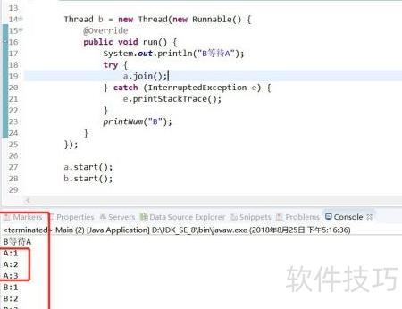 9、 所示,线程a在b中调用join()方法后,程序运行时控制台输出结果。