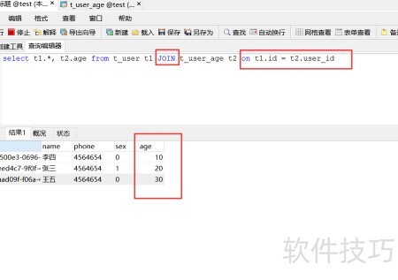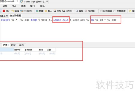 3、 通过表A inner join 表B on 关联条件的方式实现两表关联。