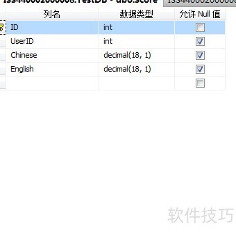 1、 启动SQL Server,建立User和Score两张数据表,结构所示。