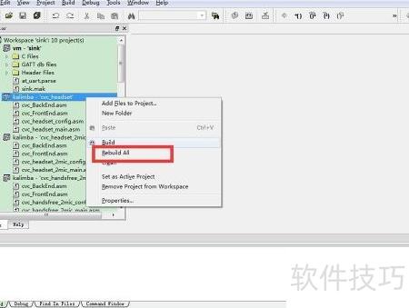 4、 打开工程后,定位到需编译的DSP项目,以cvc_headset为例,所示。